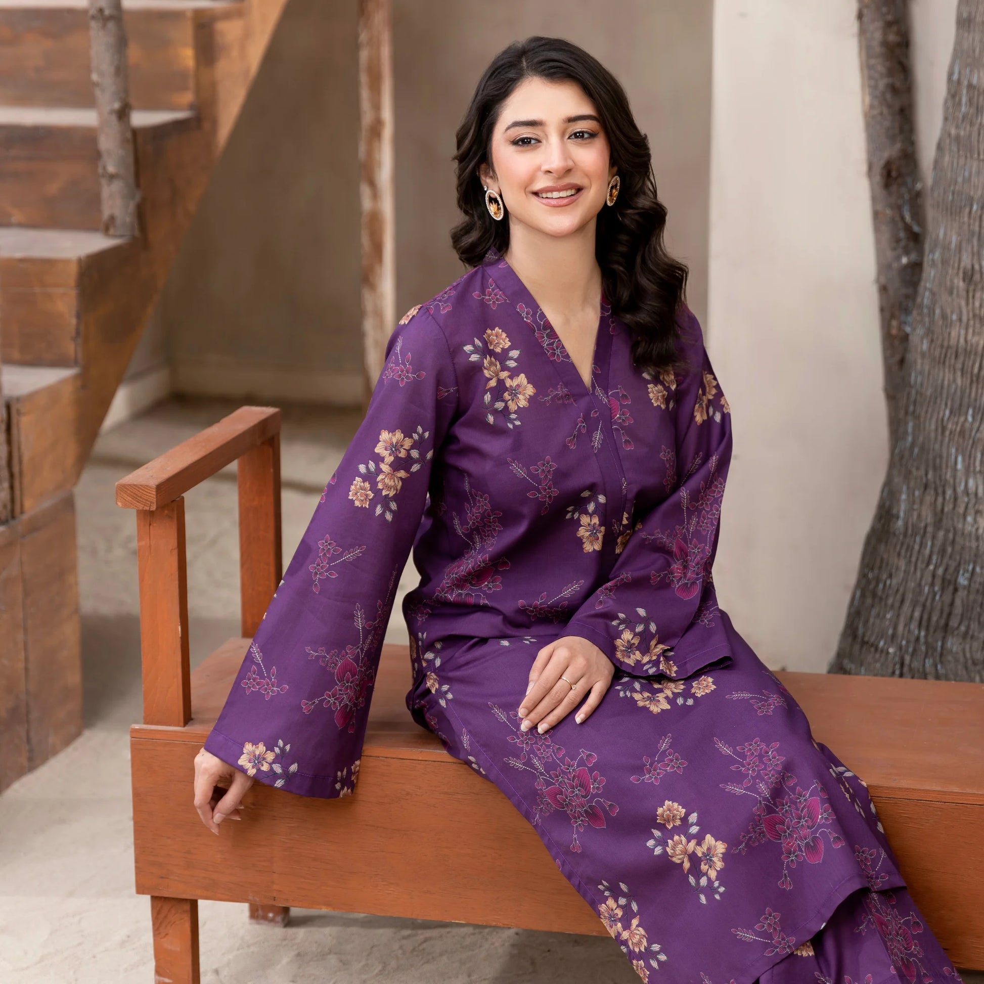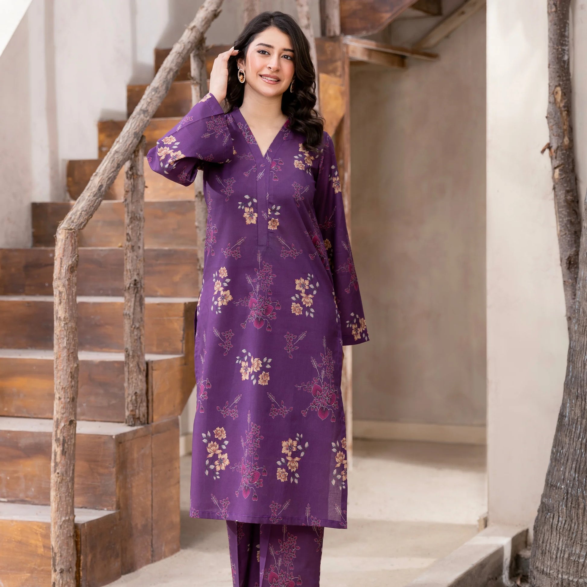 - 2 Piece printed Stitched Lawn Suit ready to wear, stunning purple colour and vibrant floral print elevate your wardrobe with this perfect combination of style and ease
