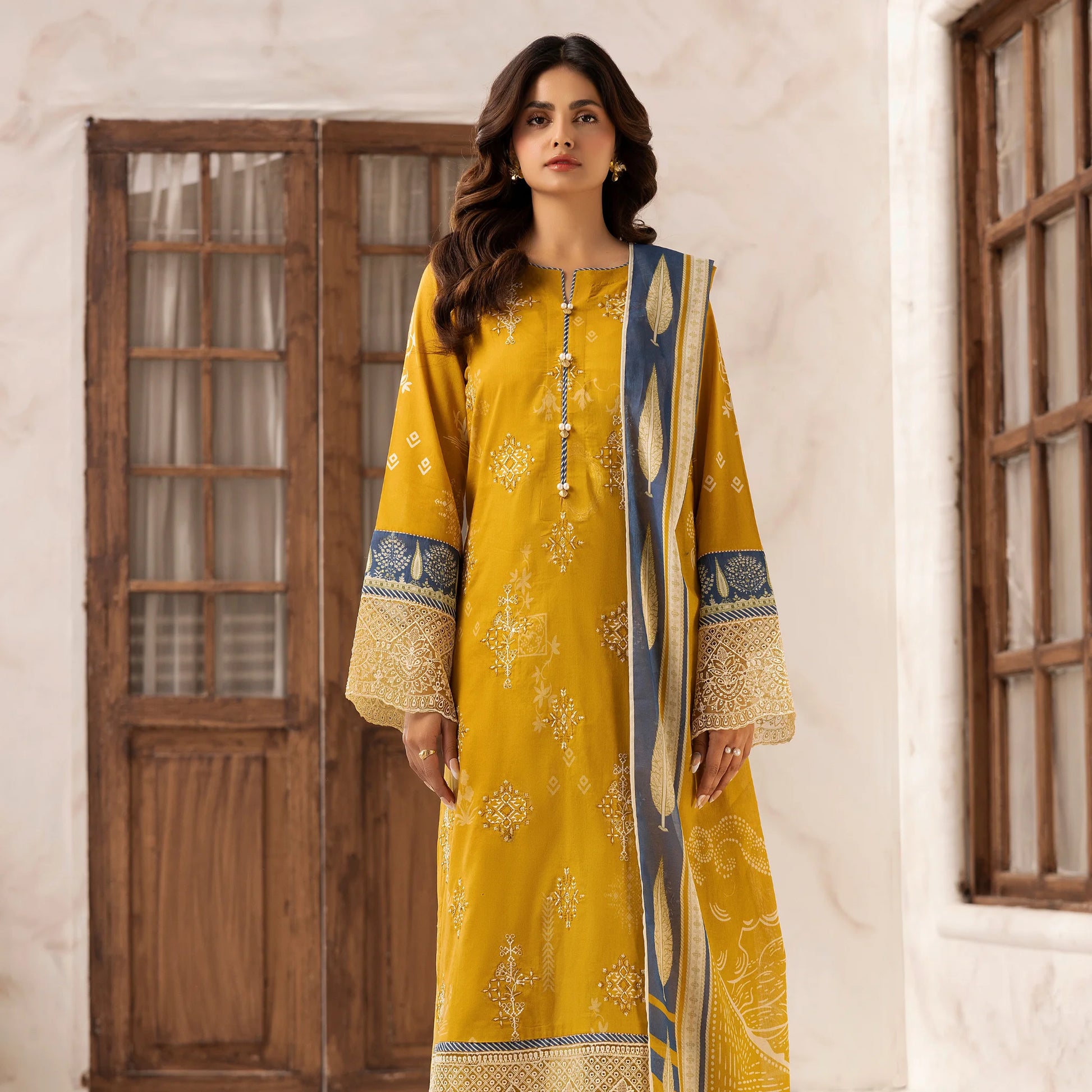 3 Piece Stitched Lawn Suit with Embroidery & Print