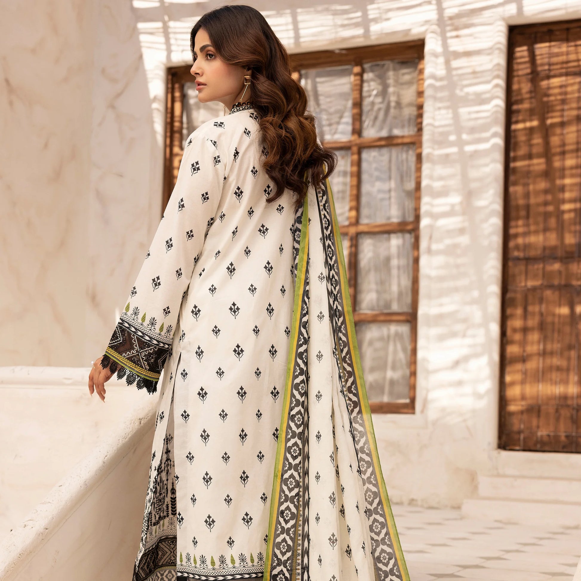 3 Piece Stitched Lawn Suit with Embroidery & Print