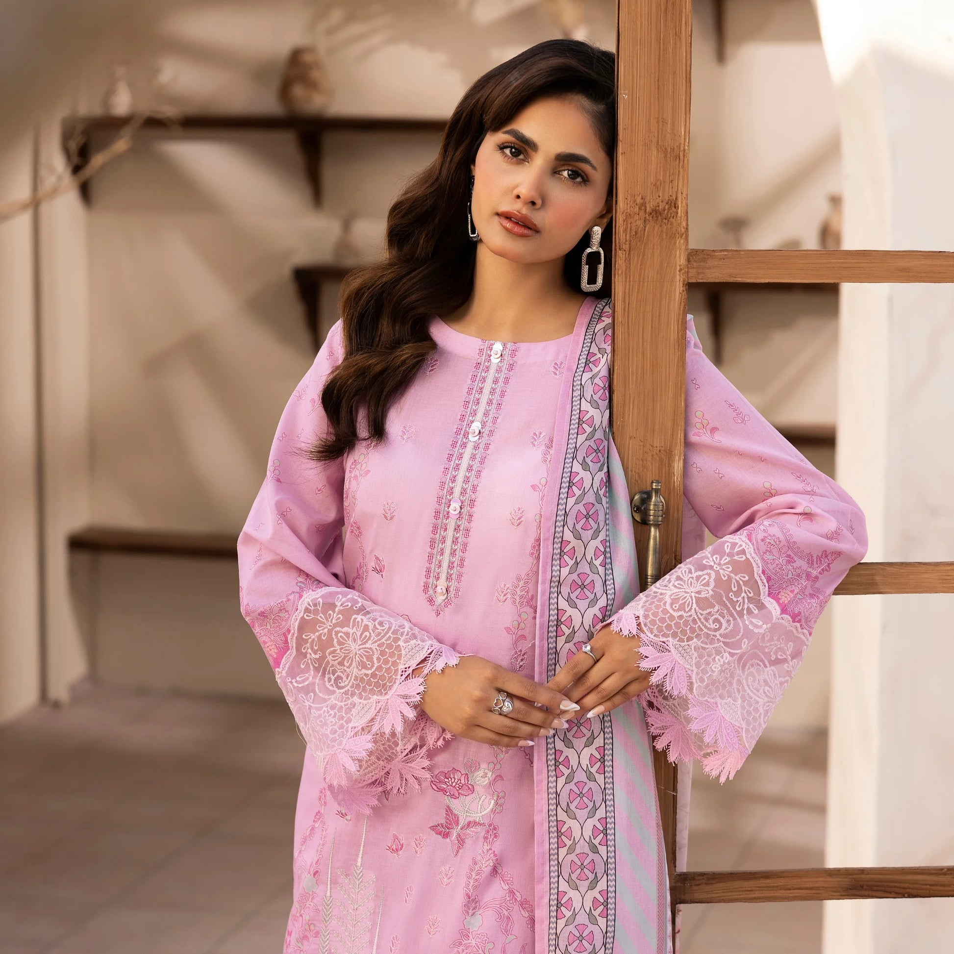 - 3 Piece Stitched Lawn Suit Featuring Elegant Embroidery and Digital Prints For a Stylish Look