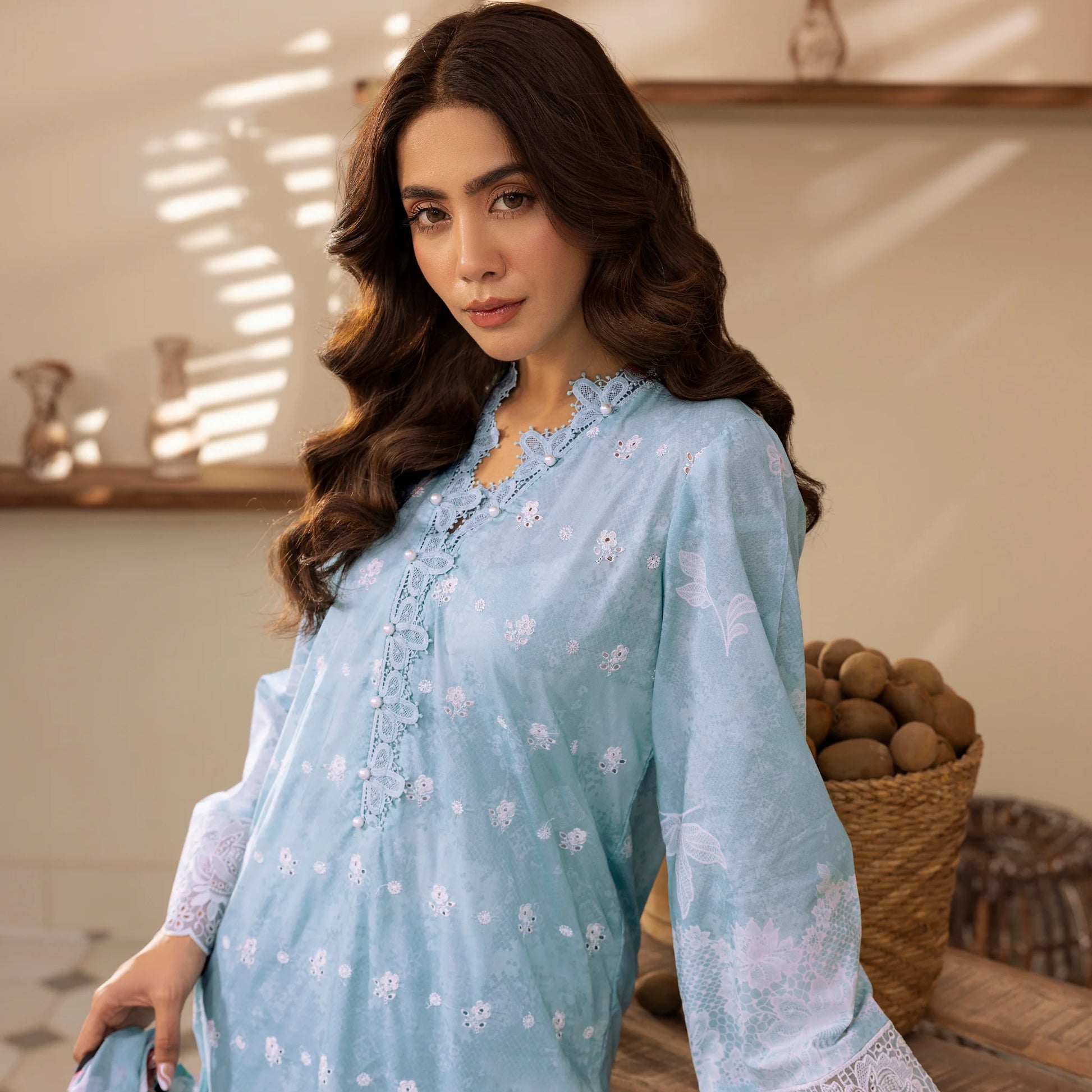 3 Piece Stitched Lawn Suit with Embroidery & Print