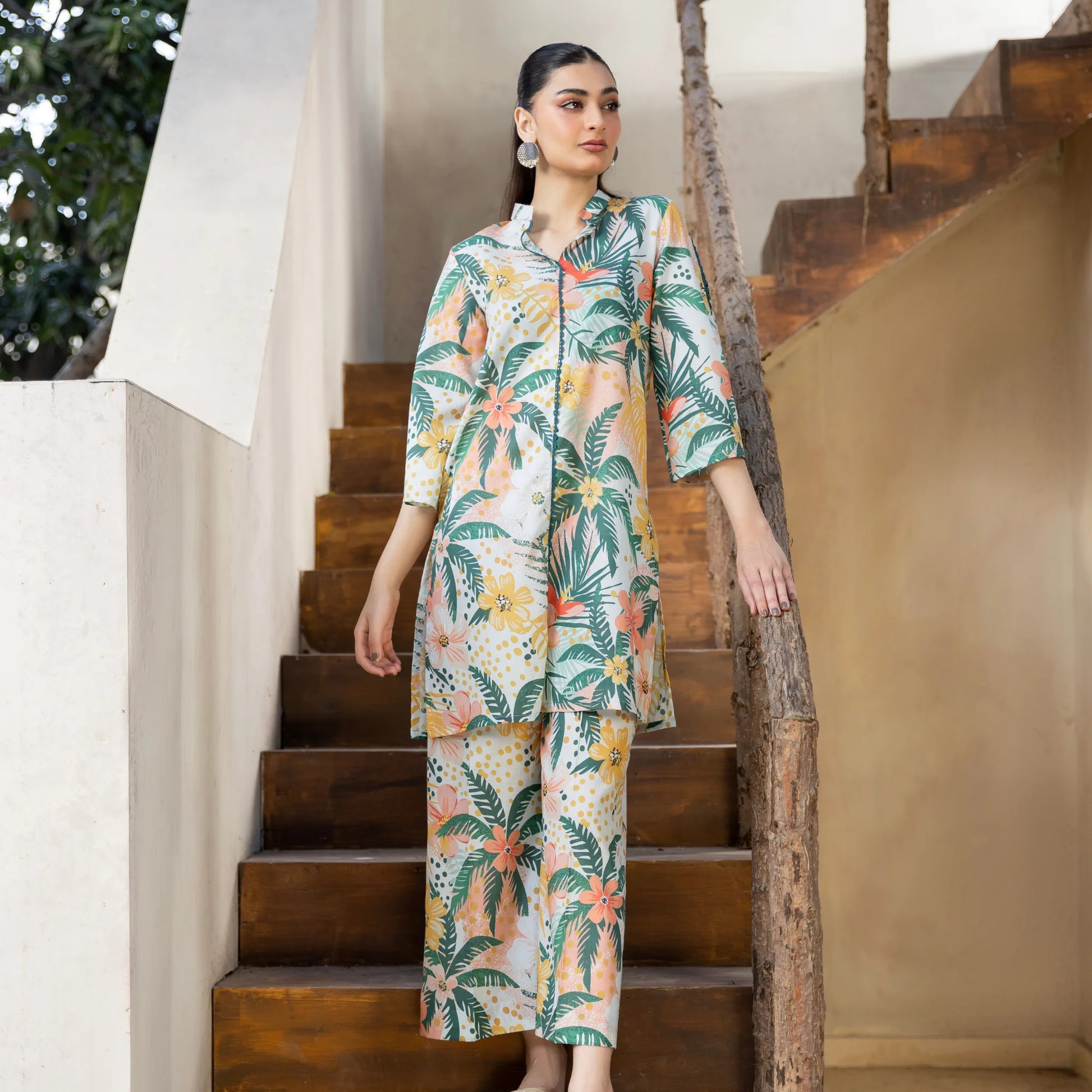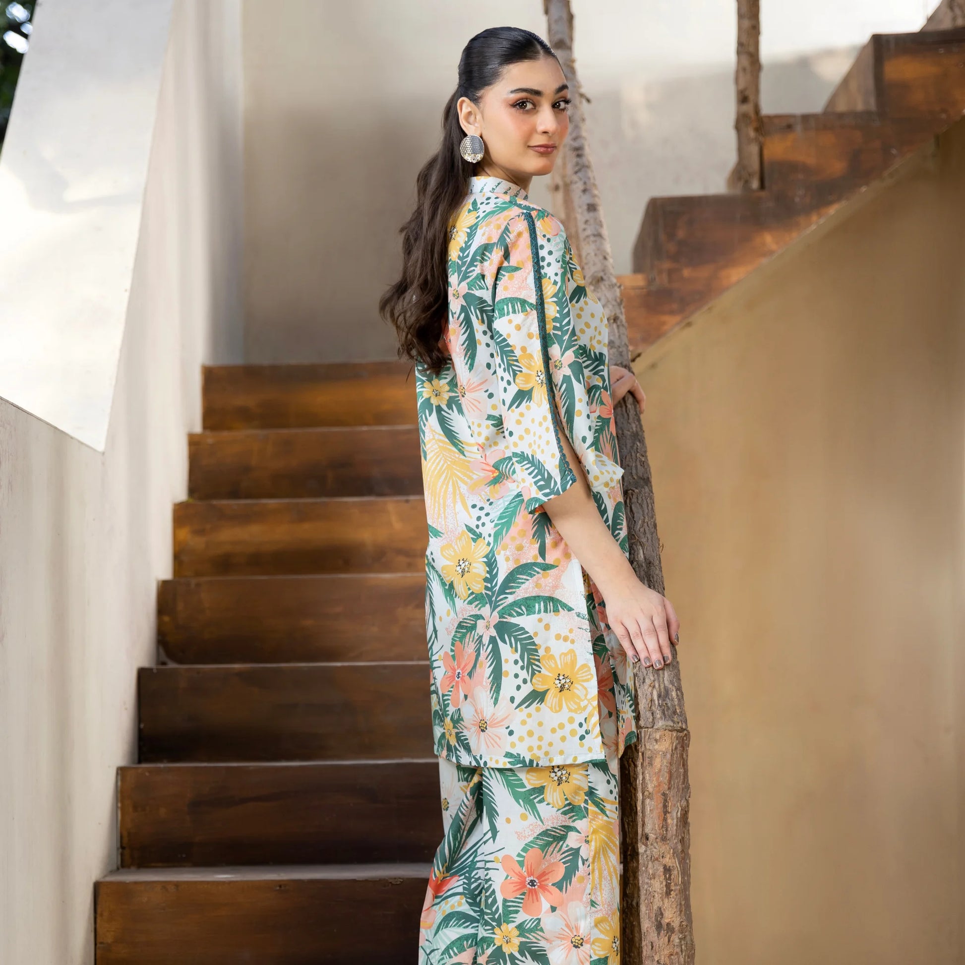 - 2 Piece printed Stitched Lawn Suit stay cool and stylish this summer with this 2 Piece printed Stitched Lawn Suit featuring a beautiful colour combination that exudes a summery vibe